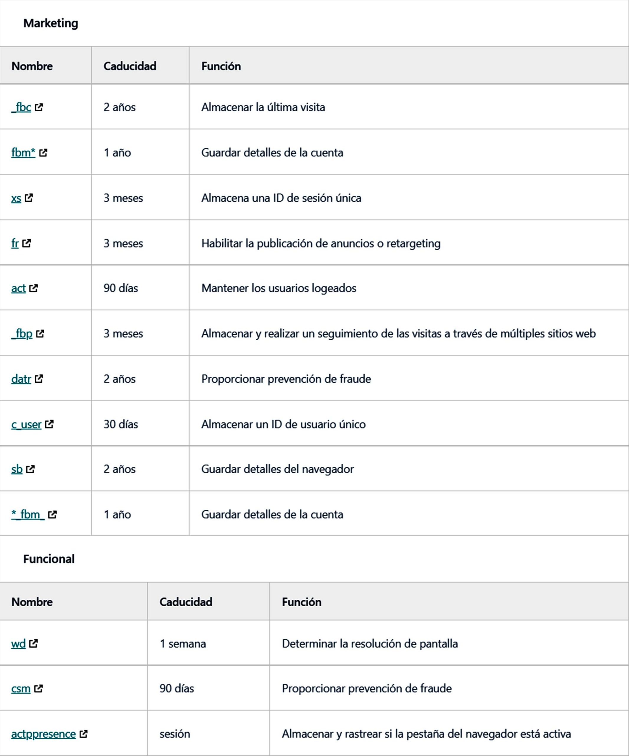 5.3 Cookies de marketing/seguimiento